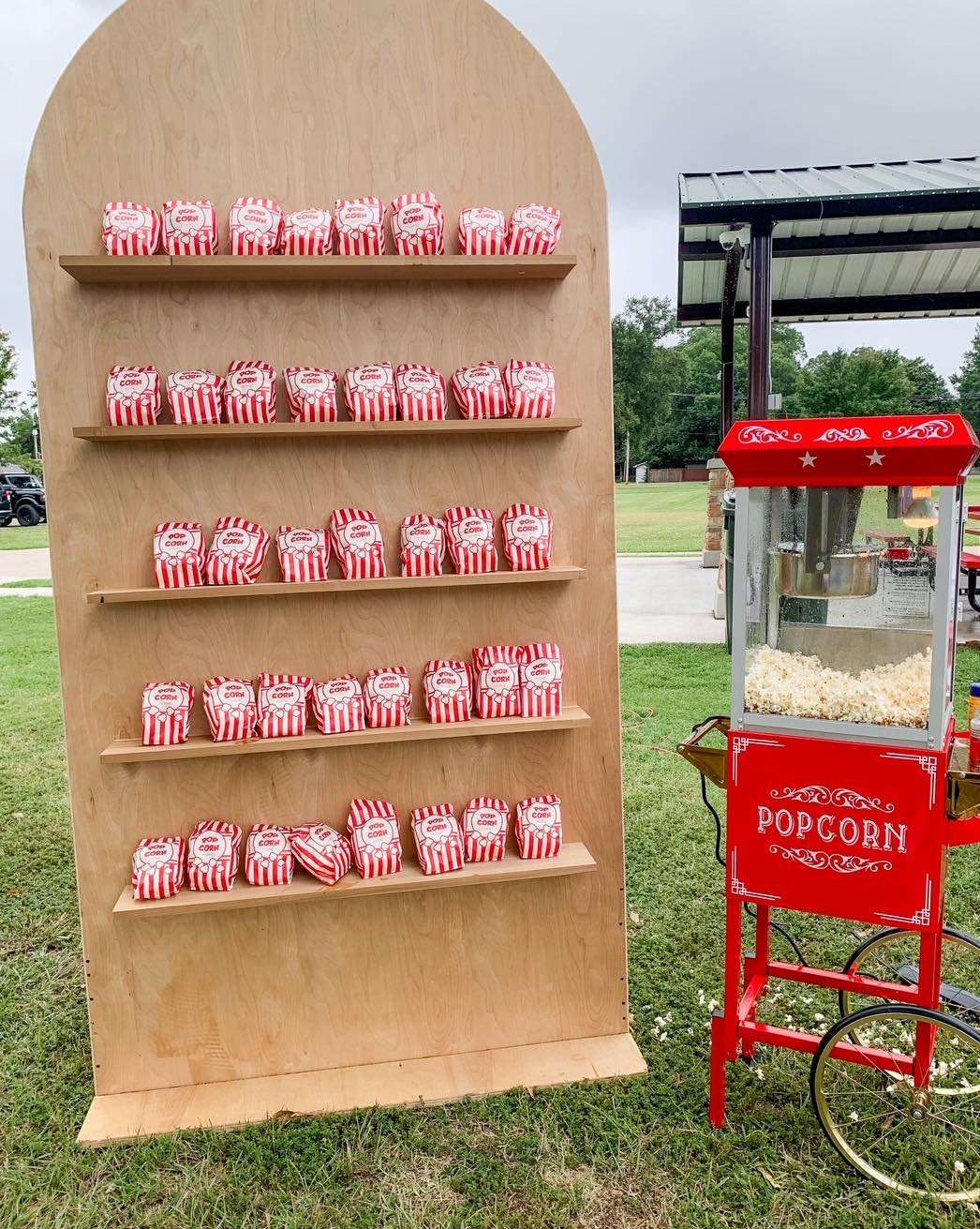 Movie setup comes with outdoor seating. We will setup everything and tear it down for you. Ask us about adding a popcorn rental and a balloon garland at a discounted rate with this setup.
